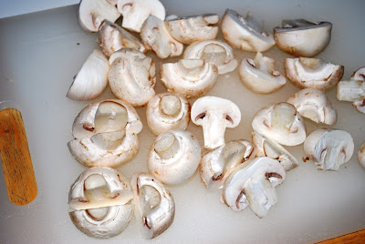 B washed and chopped up a package of white button mushrooms and added that to the pan with the onions.