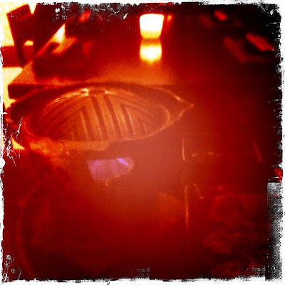 We also ordered the Wagyu Beef Yakiniku which consisted of three pieces of Wagyu beef grilled at the table. The presentation was really cool and B took some great artsy photos from his iPhone. They are cool to look at but a bit blurry: