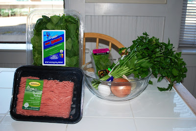 I heated up a sauce pan on the stovetop and added a few tablespoons of extra virgin olive oil on medium high heat. When the pan was hot, I added the chopped onions and cooked them until they were translucent. I then added the garlic and cooked them for a few minutes before I added about one pound of ground turkey. I cooked the turkey for about eight minutes - not quite browning it but just cooking it through.