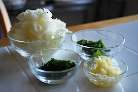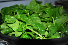 When the spinach was done cooking, I put them in strainer to help get out some of the excess water.