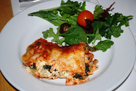 The dinner was simple, hearty and tasty. We all had second helpings of both the lasagna and the salad, although about half of the lasagna ended up in the freezer for a lazy day where we don't feel like cooking. The entire meal was fantastic with a bottle (or two...or three) of red wine.