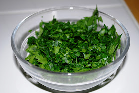 B also chopped up a few handfuls of flat Italian parsley. We only needed a quarter cup and anything extra went into our pasta sauce.