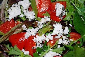 I wanted to make a simple side salad to go along with our pasta, so I looked through our fridge to see what ingredients we had. B picked up our go-to salad - Olivia's Organics Spring Mix.