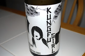 To go with our dinner, I poured two glasses of Kung Fu Girl Reisling. Even though red wine would have been more appropriate, this was a leftover chilled bottle from B's birthday celebration and I wanted to put it to use!