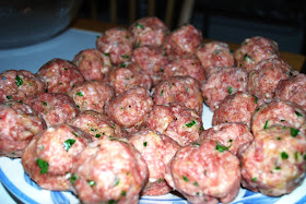 Then came the fun part, mixing all of the ingredients together with 1/2 pound each of pork, veal and beef.