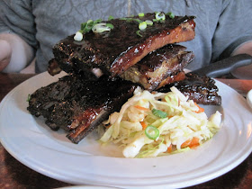 Glazed St. Louis ribs with bourbon jalapeño BBQ & coleslaw - B asked for this appetizer dish to be made into an entree and our attentive server was happy to accomodate him.  The entree portion had a bit more ribs along with an additional side of the hominy mashed potatoes.  I stole a bit of the ribs and they were so tender with a deliciously sweet glaze.