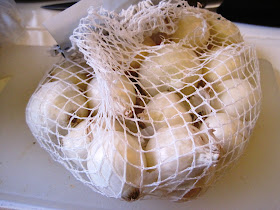 I would have chopped up more of the onion for the soup until I discovered some leftover boiler onions in the fridge as well. I peeled about six of the boiler onions and halved some of the large ones.
