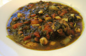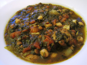The soup had thickened while it simmered all day and it felt so warm on a cold day like yesterday. If it were winter time, I totally would have dipped some crusty bread in this soup. but since it is spring, the soup was a perfect lighter choice. The soup felt so filling with the spinach, tomatoes, garbanzo beans and chicken sausage yet still so healthy. Here's a closer look: