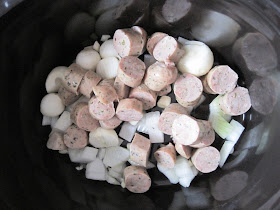 I sliced up all four links and added the chicken sausage to the slow cooker.