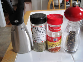 I of course had to season everything and added generous shakes of some of my favorite spices - herbs de Provence, fresh-cracked salt and peppercorn, along with crushed red pepper flakes.