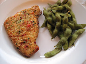 Since I was already reaching into the freezer for our dinner, I also found a package of edamame in the freezer. I decided to do a simple preparation by steaming the edamame and then tossing the cooking edamame with some fresh cracked sea salt.