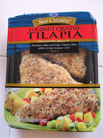 But I will admit that I was pleasantly surprised. I got a few different products but the one that I've tried out so far is the Coconut Crusted Tilapia: