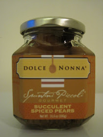 While I was away on vacation, the generous folks at Dolce Nonna sent me a jar of their Succulent Spiced Pears. Dolce Nonna is a gourmet food company that specializes in pickled and marinated Italian vegetables. While their product selection is currently limited, they are introducing their new Succulent Spiced Pears to the market and I was eager to give them a try.
