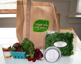 Since I enjoy shopping and cooking with local ingredients, I signed up right away in February. It seemed like farmer's market season would never arrive but when I arrived home from vacation on Friday, I found my first delivery waiting for me (I had put in a small order while I was away).