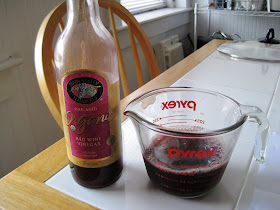 I then measured out three-quarter cup of red wine vinegar, which was added to the pan.