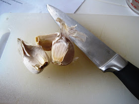 And finally, we used our garlic press to add four minced cloves of garlic to the pan. The recipe only calls for two tablespoons but I love garlic and I always add more to any recipe where I can.