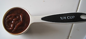 I also measured out a quarter cup of Sriracha chili sauce. Nothing will wake you up like working with spicy chili sauce first thing on a Sunday morning!