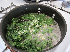 Then we added the sauteed beet green and garlic mixture and some more of the two cheeses.
