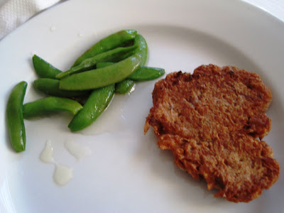 The latkes were hearty and went well with the cold sugar snap pea salad. I even used a bit of the vinaigrette as a sauce for my latkes.