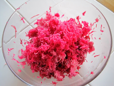 Since I was still a bit groggy from my cold medicine, B offered to peel and shred the beets for me. I think he was nervous about me handling any sharp objects!