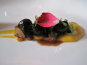The next course, however, was my hands-down favorite - Fricassee of Escargot with thumbelina carrots, mushrooms, salsify, lardons, and brioche. The escargot was perfectly, and I mean, perfectly cooked. The brioche with the unbelievably flavorful carrot puree and escargot made the amazing bite of deliciousness.
