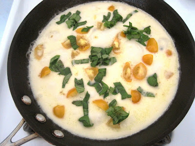 I started out by chopping up some gorgeous yellow cherry tomatoes I had on hand.