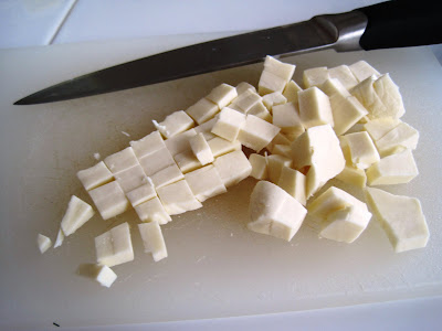 I cubed a quarter of a ball of Fiore Di Nonno mozzarella cheese and also put that aside.