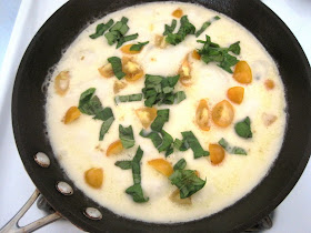 I added some of the chopped basil, fresh cracked peppercorns, salt and oregano to the omelette and slowly let the omelette cook at medium heat.