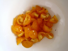 I started out by chopping up some gorgeous yellow cherry tomatoes I had on hand.