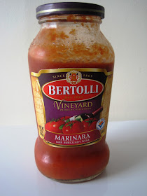 While the eggplant and garlic were in the oven, I put my pasta water on the stove and got to work on my pasta sauce. Normally I would make my own sauce but I had a jar of Bertolli Marinara with Burgundy Wine open in the fridge from my beet green and bacon pizza. Since I hate to let food go to waste, I decided to use this sauce as my base but doctor it up with some flavor.