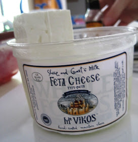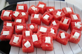 The next day, at the party, I cubed out pieces of a firm feta cheese.