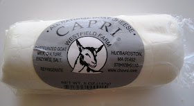 I also crumbled up a few slices of this delightful local Capri goat cheese from Westfield Farm that I found at Whole Foods. It was so creamy and tangy - I definitely took a few nibbles as I sliced it up.