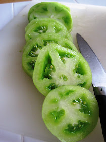 To start, I washed and sliced two beautiful green tomatoes from Siena Farms, which is where I get a lot of my favorite local ingredients.