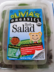 While the tomatoes were baking, I prepared the rest of the ingredients for my salad. I decided to use Olivia's Organic's herb salad because I wanted a nice slightly bitter flavor to contrast against the tart and sweet flavors of the green tomatoes.