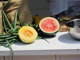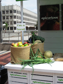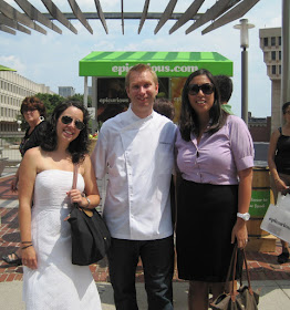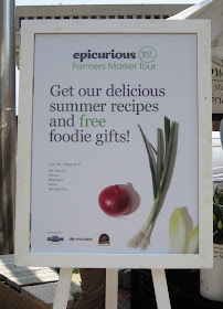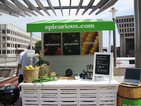 We walked over and found Chef Ben setting up for his cooking demo a little before noon. This demonstration was sponsored by the always helpful Epicurious (a great online resource for food lovers) and this was one of their stops in third annual national Farmers' Market Tour.