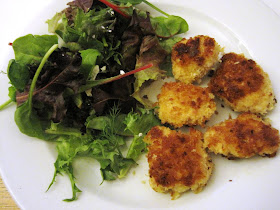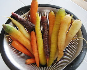 We ate the carrots for dinner as a side to our baked panko-crusted chicken nuggets and Olivia's Organics herb salad (topped with green onion and goat cheese).