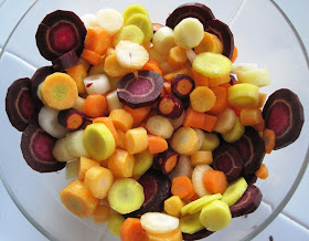 I sliced all of the carrots and gave it a quick toss in a bowl with salt and fresh cracked peppercorns.