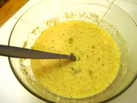 I put Bret to task to finely dice up a half a pound of Swiss cheese that I had picked up from Whole Foods on the way home from the gym. I wasn't sure how many cups were in a pound so I estimated at half a pound and luckily I had enough for our doubled recipe. While Bret got to work on the cheese, I combined the rest of the cheese sauce ingredients and also added a bit of fresh-cracked pepper to the sauce. I wasn't reading the ingredients closely and I put in the Parmesan cheese in the sauce. Whoops! Bret added the Swiss cheese to the sauce and we gave it a good mix.