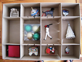 Although our general ornaments (the sets of matching bulbs) have their own boxes, we've been storing our travel ornaments and our sentimental ornaments haphazardly in a holiday box in our linen closet. In general, this closet is quite the mess and it really needs some serious organization. Over the next few months, we are going to slowly organize the closet and I decided to first tackle the holiday ornaments. As a sidenote, I've taken a "before" picture but I'll post it when we're done organizing the linen closet shelf by shelf - and this could take awhile!