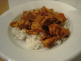 To start, I washed two cups of white rice and let the rice cooker do the rest. I then got to work on my protein. I took two medium-sized boneless chicken breasts and seasoned it on both sides with salt, pepper, garlic powder, cayenne and paprika. I decided to poach the chicken breasts in a saucepan with some leftover chicken broth. I didn't have enough chicken broth so I added a bit of leftover beef broth as well. I figured that the beef flavor wouldn't be a big deal with all of the strong flavors of the masala sauce.