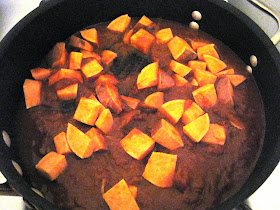 I wanted to make sure that the sweet potato cooked through so I added it first to a large sauce pan with the entire masala sauce on medium heat.