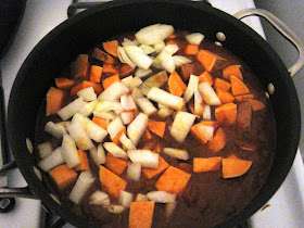 I then chopped up half a large sweet onion and added that to the sauce as well.
