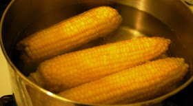 While the burgers were cooking, Bret also boiled up a few ears of corn.