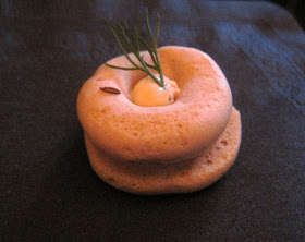 Since vodka is probably my favorite liquor, I could have happily sipped on this all evening! Each cocktail is paired with a tasting from L'Espalier's Chef de Cuisine, James Hackney. Our first bite were "bagel" macaroons with a salmon mousse filling. This little bite was so light and airy. My only complaint was that I wish there were more as I could have easily eaten a dozen of them!
