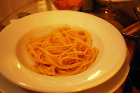 When the pasta was ready, I drained it and put a generous portion into each pasta bowl.