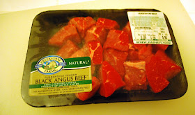 I lightly cooked the vegetables in a saucepan on medium heat with some vegetable oil just until the onions slightly softened and then I removed it from the pan. I then cubed up a little under a pound of lean stew beef.