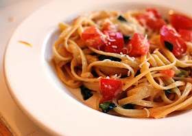My most recent pasta dish - Linguine with Brie, Tomatoes & Basil |