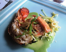 Fourth Course - Duo of Lobster - Grilled Maine lobster tail and lemongrass butter poached lobster claw and knuckles served with a Thai red curry sauce. |