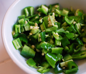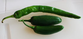 Then I washed and dried two jalapeno chilies, along with one long green chile pepper.