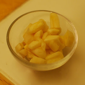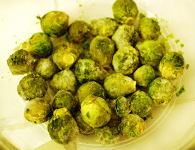 First, I took out some Brussels sprouts out of the freezer. I had purchased them last week at the farmers' market and put them in the freezer for future use. I removed the outer leaves, gave the sprouts a quick rinse and let them thaw out while I prepared the rest of the ingredients.
